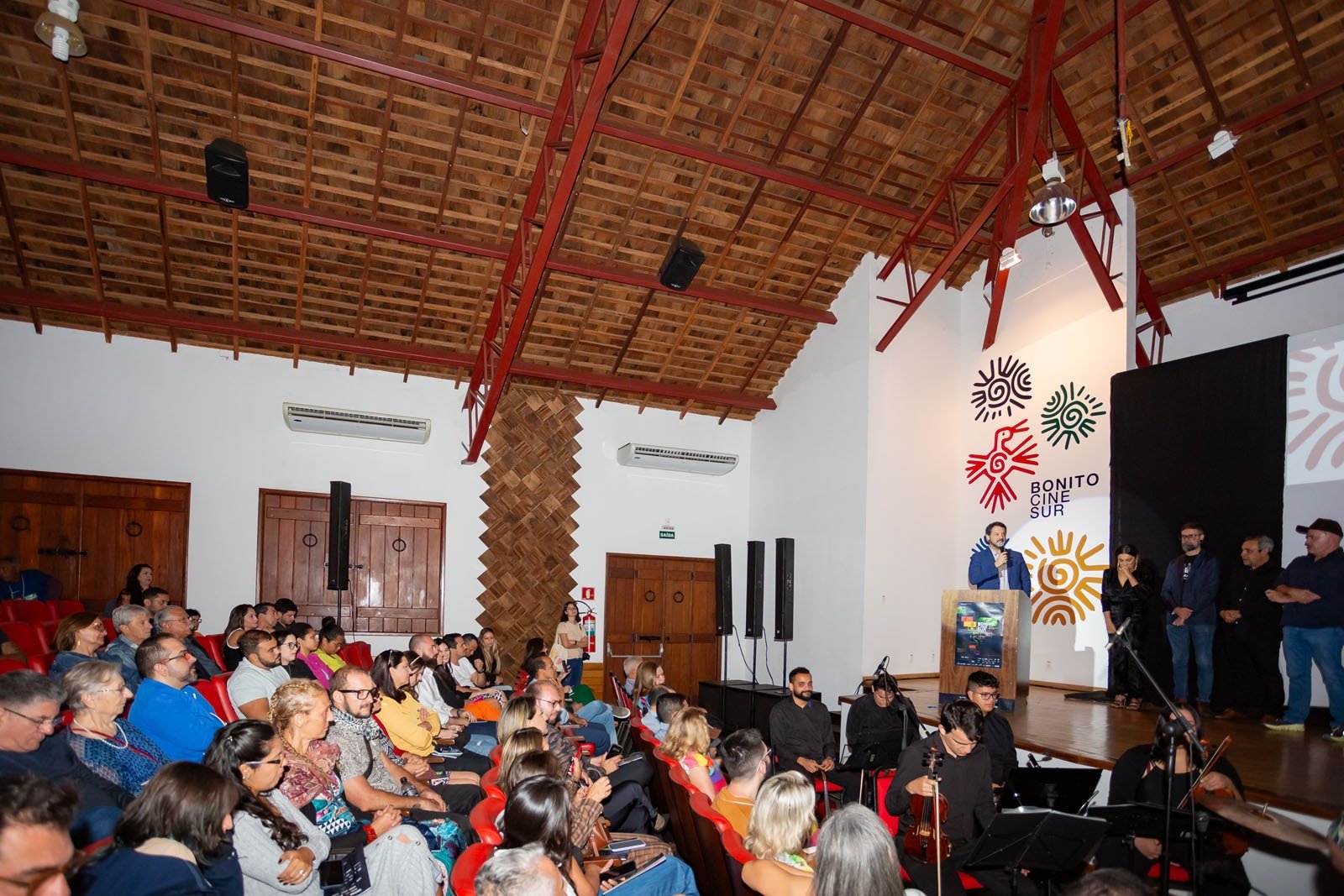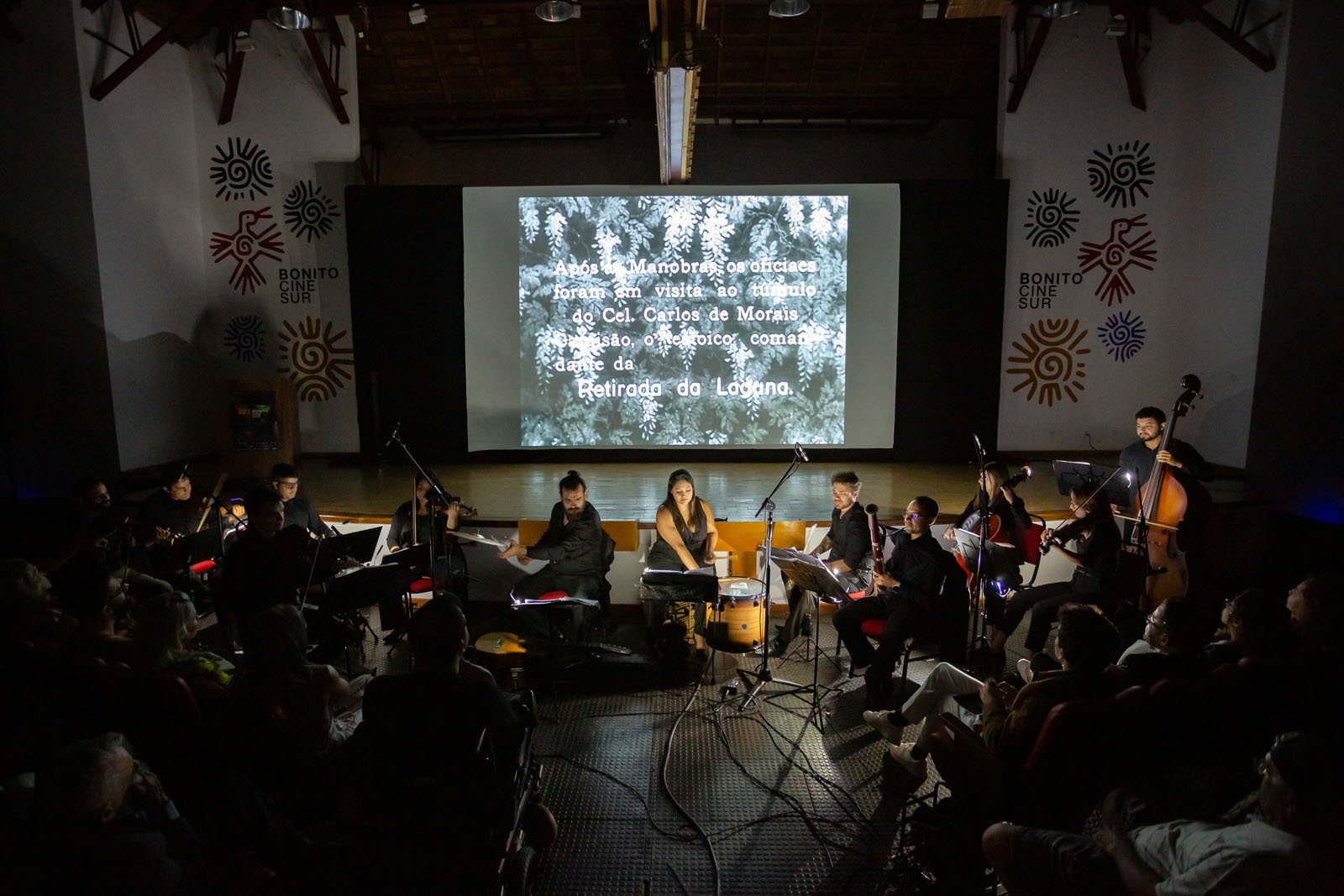 Na noite do último sábado (4), aconteceu a cerimônia de abertura da primeira edição do Bonito CineSur – Festival de Cinema Sul-Americano de Bonito com a apresentação da atriz Dira Paes no palco do Auditório Kadiwéu, no Centro de Convenções da cidade. Com sala lotada, “Alma do Brasil”, média-metragem mudo de 1932 com direção de Líbero Luxardo, teve projeção acompanhada pela Orquestra Prelúdio, sob regência do maestro Eduardo Martinelli.